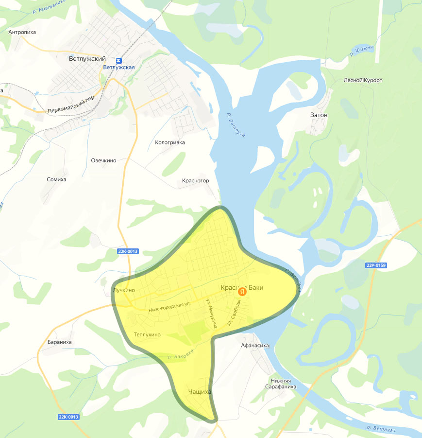 Зона округа - р.п. Ветлужский - 200 руб. (фиксированная цена)